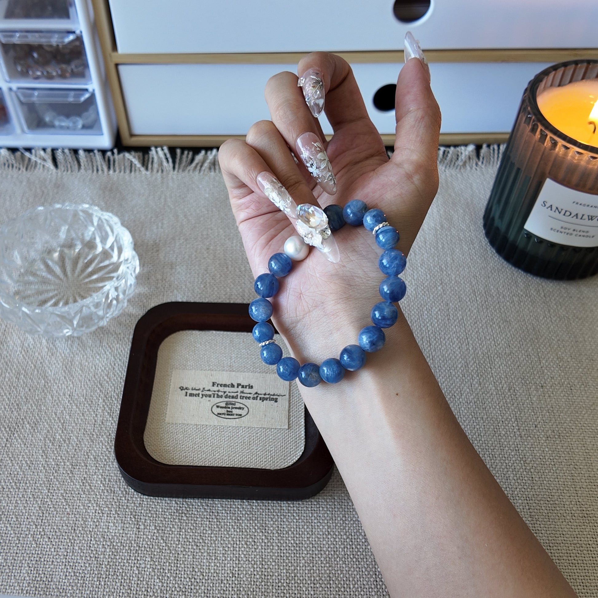 Each stone is intuitively selected for its vibration and character, then handcrafted with intention in small batches. The design is minimal, allowing the natural blue tones and raw beauty of the crystal to remain the focus.