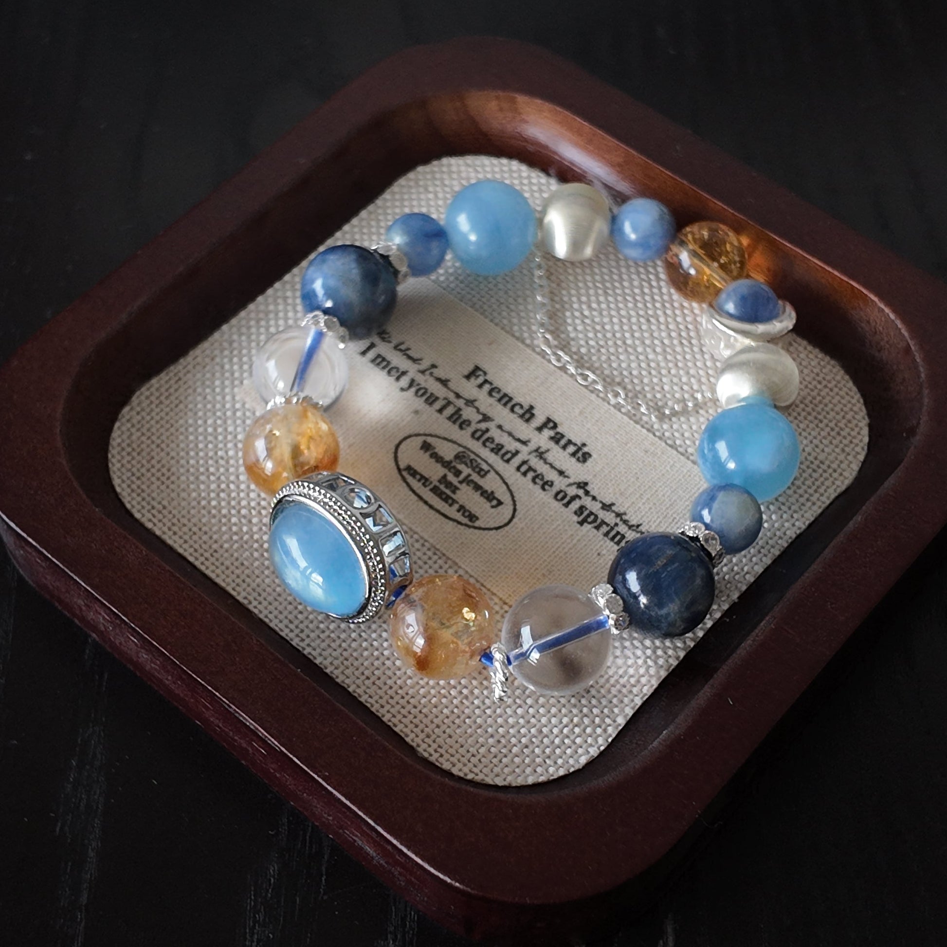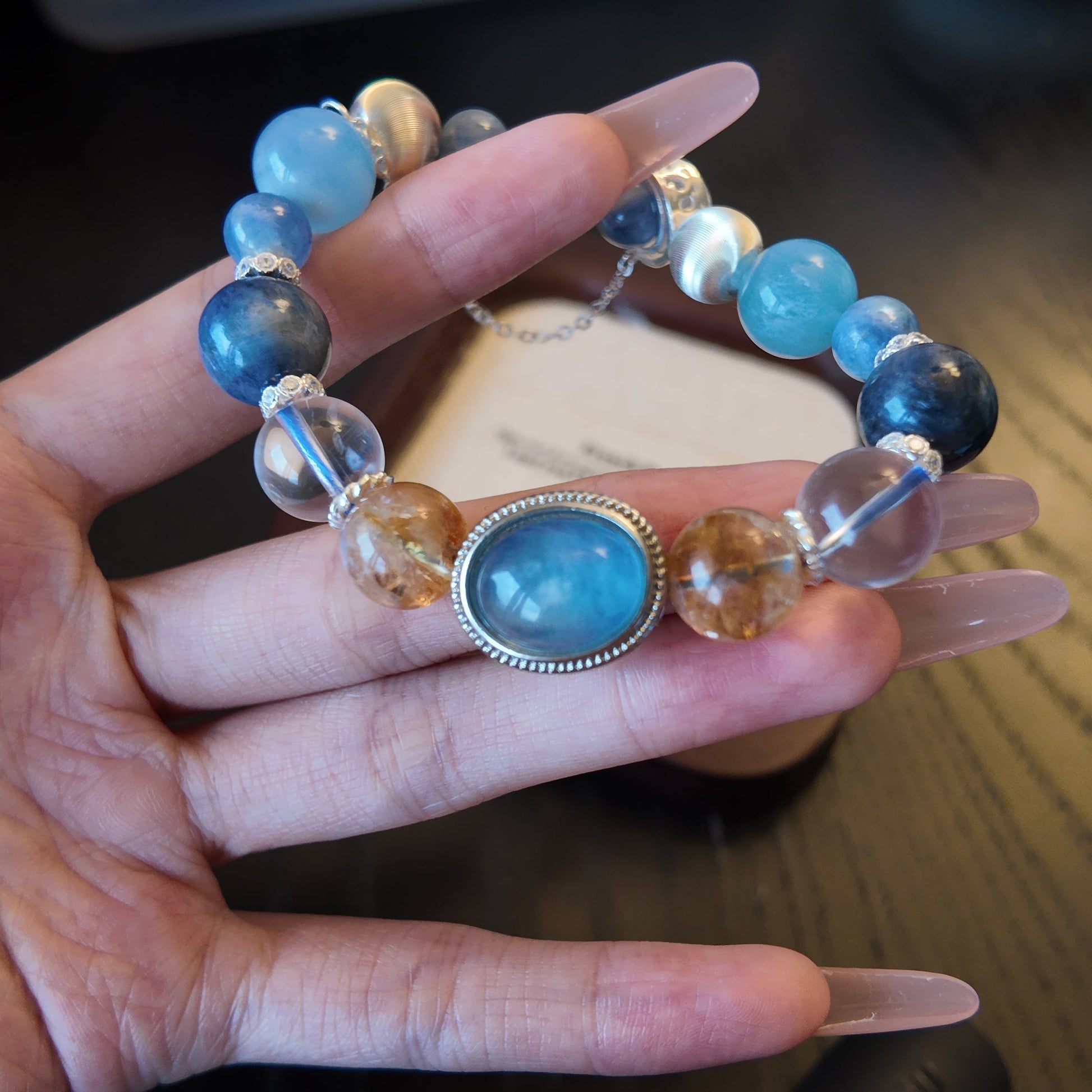 This piece blends cool blue serenity