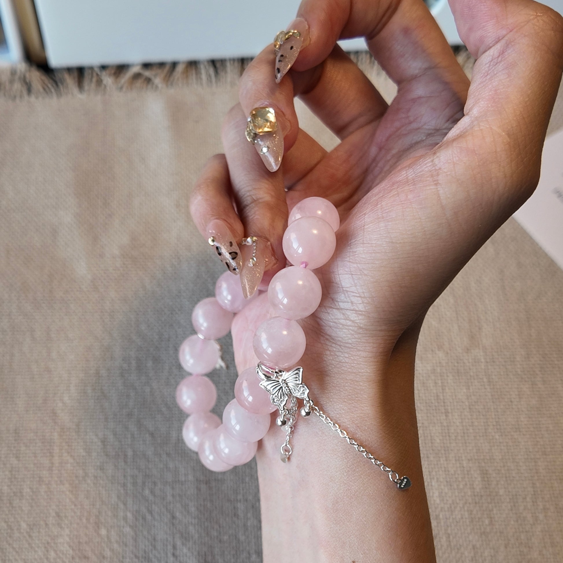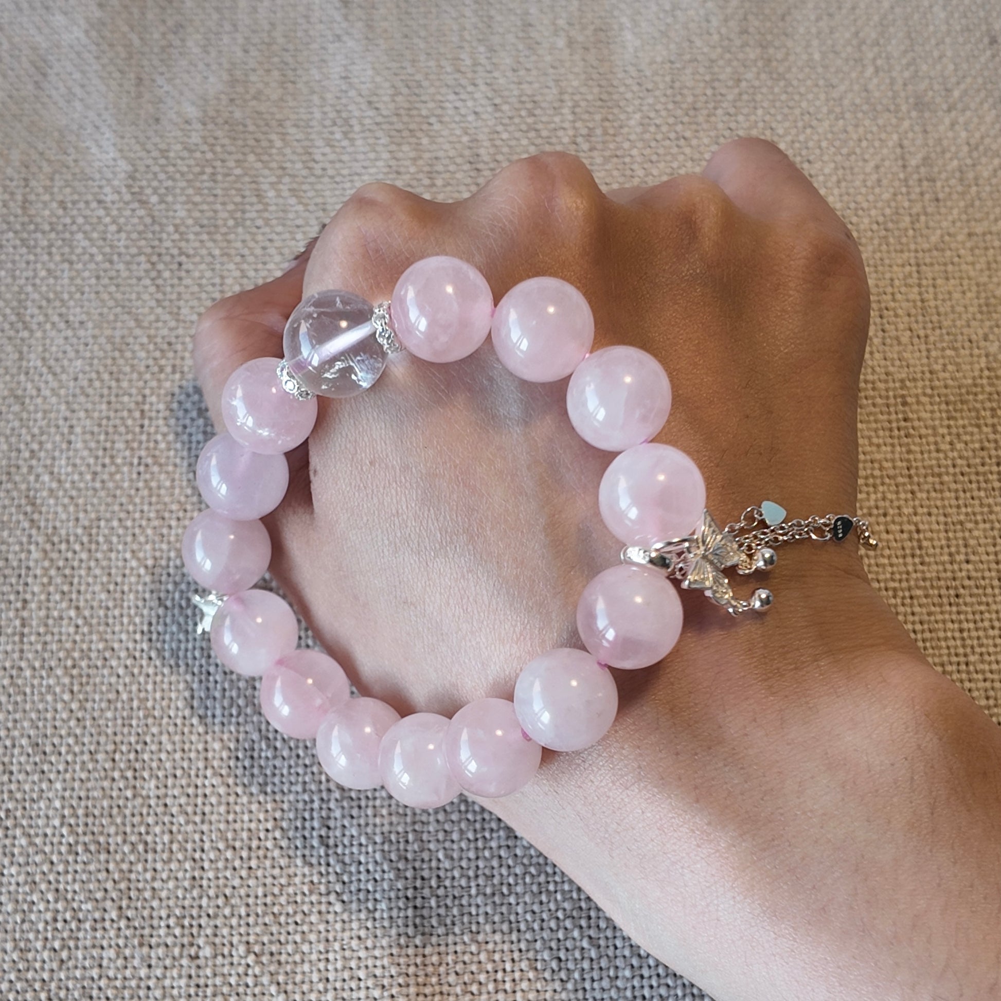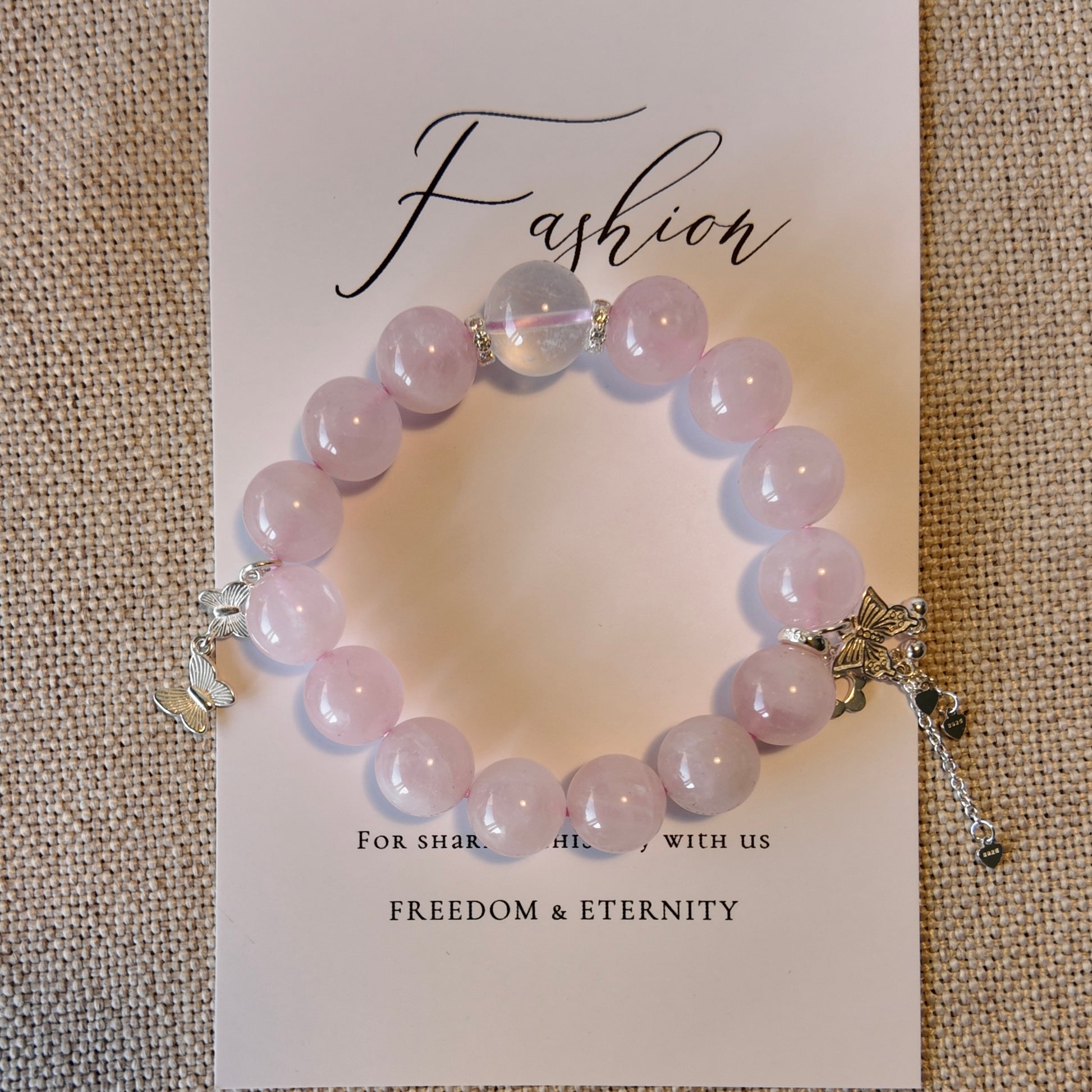 A soft pink crystal bracelet designed to soothe emotions and restore inner balance.