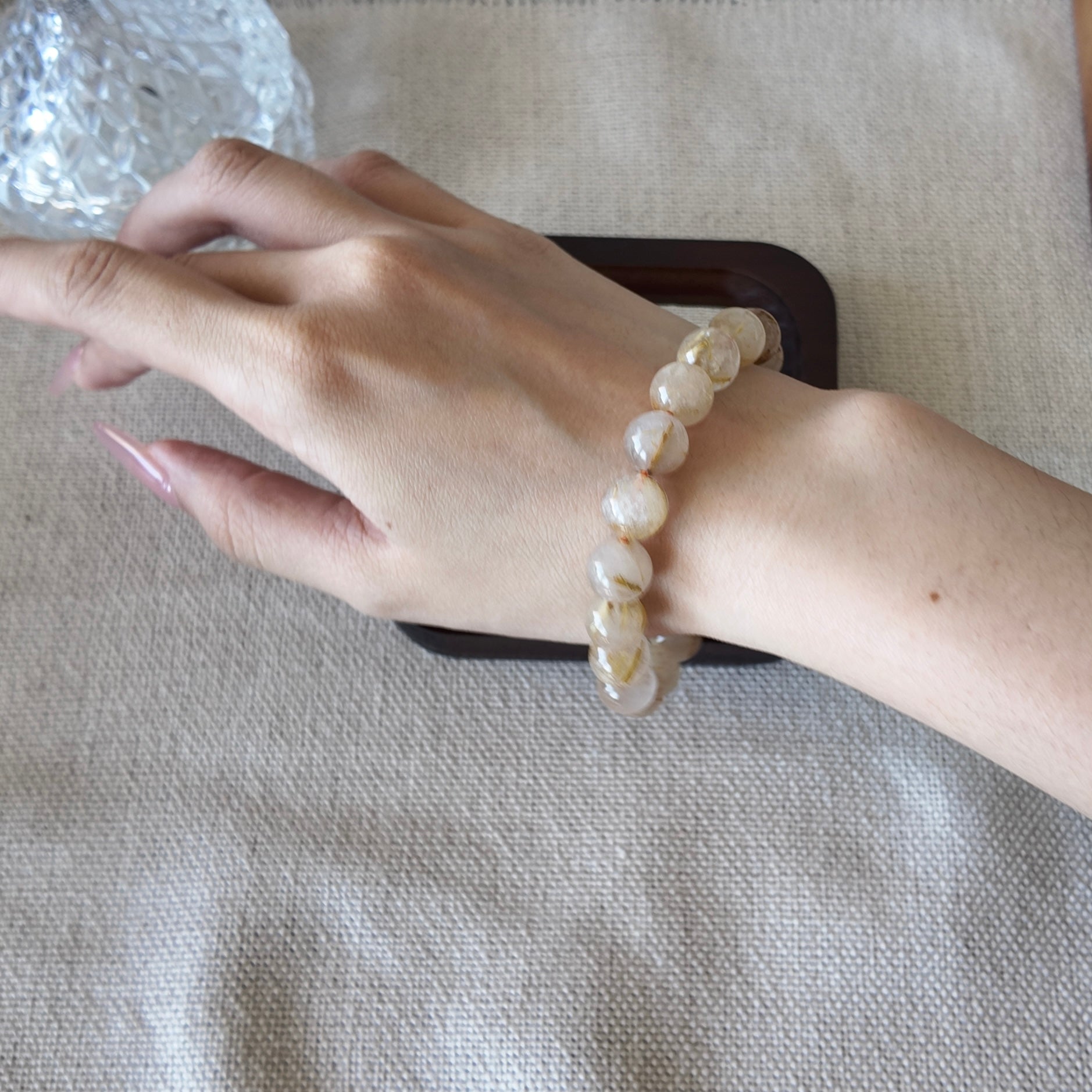 Natural golden rutile threads grow freely inside clear quartz, creating depth, movement, and a refined brilliance.