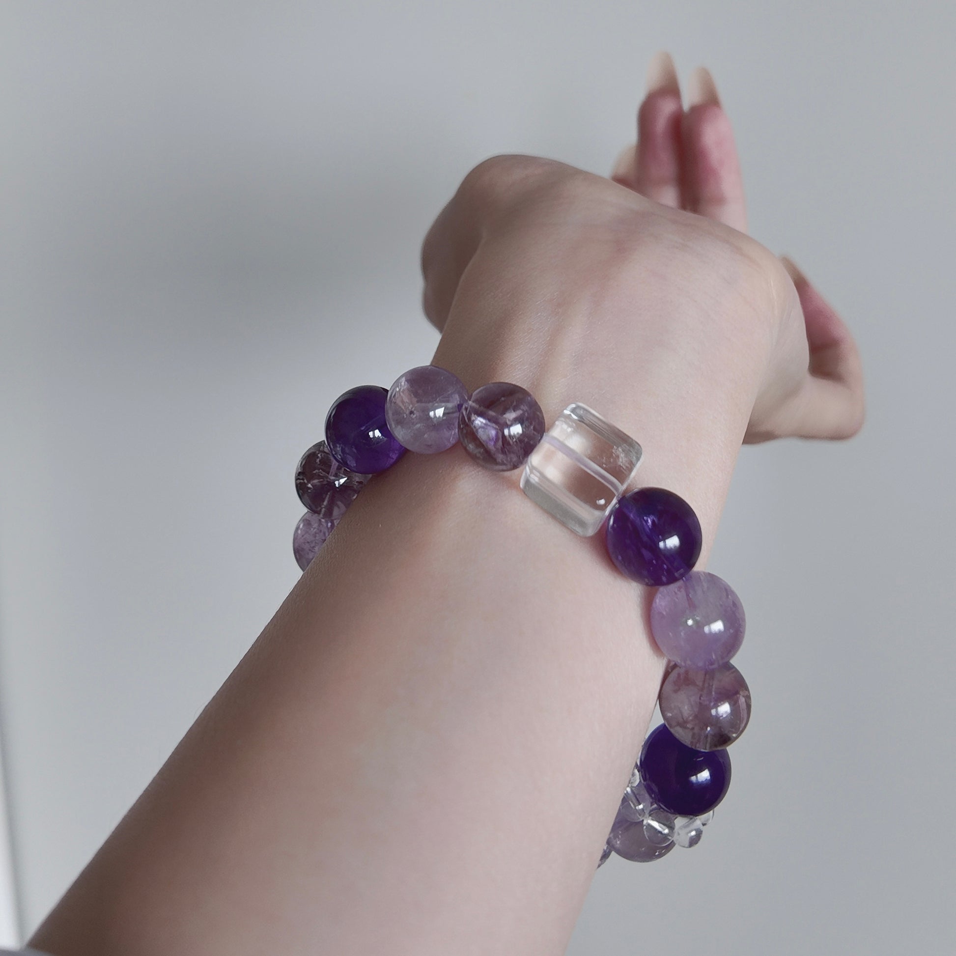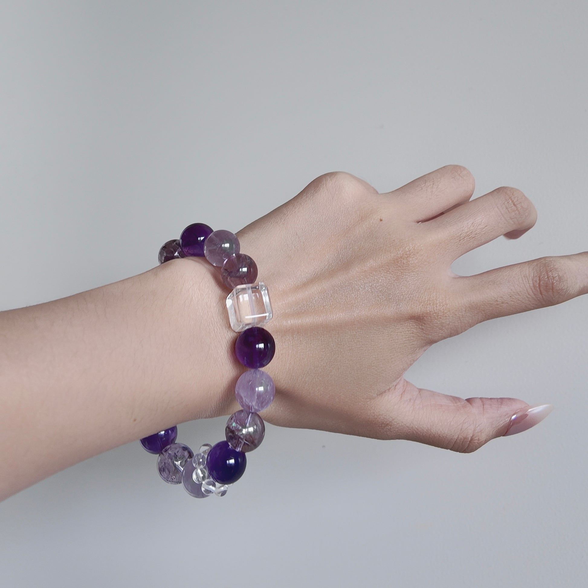 The purple hues flow naturally along the wrist,